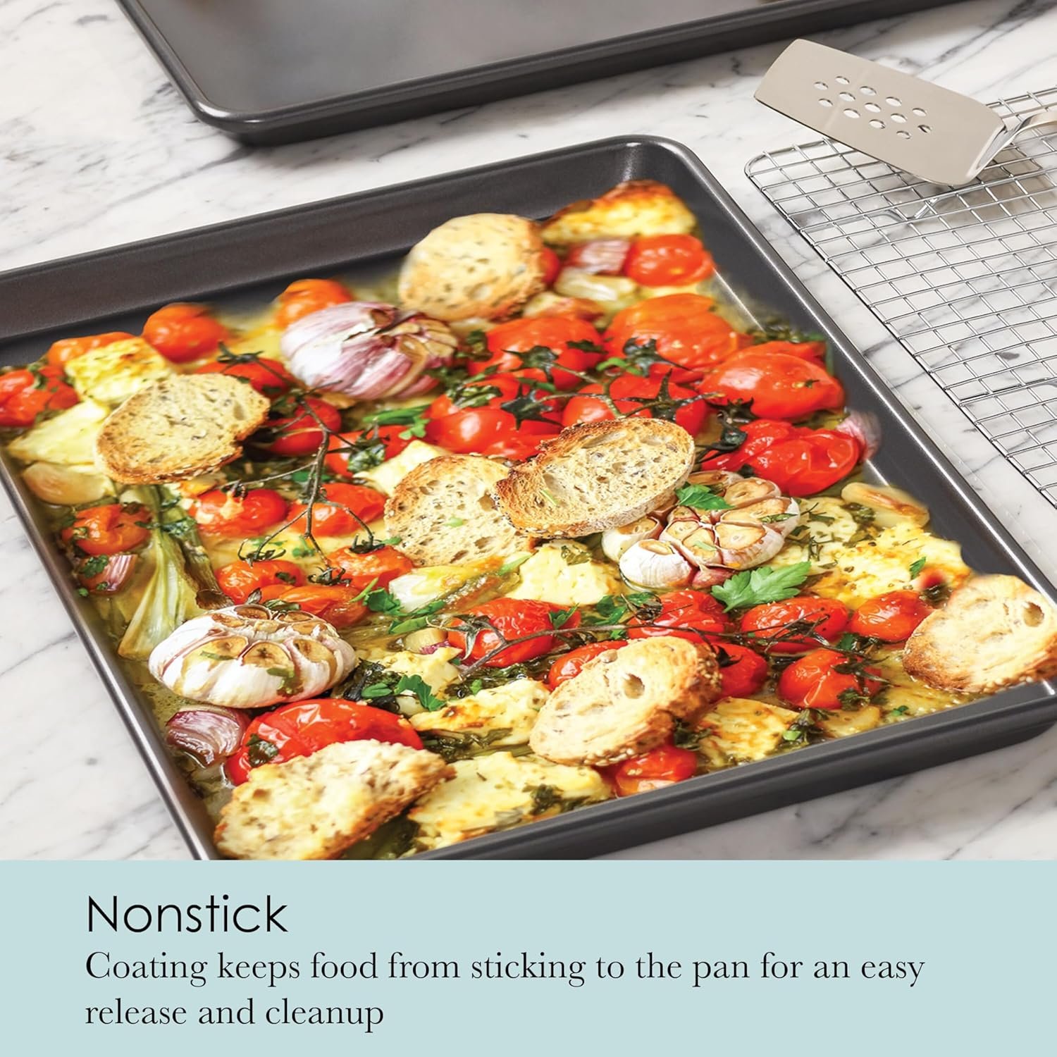- Oven safe cookware: Heavy-weight aluminized steel ensures uniform heat distribution, preventing hot spots. Ideal for cookies, bars, and roasting vegetables.