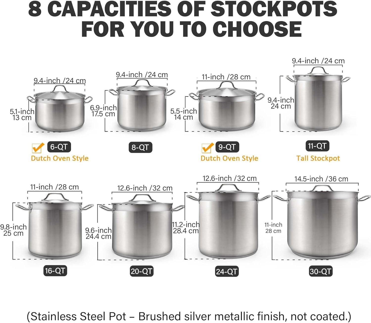 Competitors like the Lodge Enamel Dutch Oven and Le Creuset offer enameled designs at higher cost, while this model provides all-steel construction for easier maintenance and dishwasher safety. The included lid is sturdier than those on most 9 quart stockpot or casserole pot competitors. According to Home Depot reviewers, its polished interior and excellent in-store support set it apart.