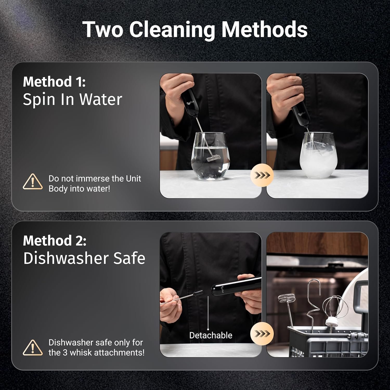- Double Whisk Attachments: Easily switch between classic froth and thick whipped cream. The detachable design makes this drink mixer ideal for matcha, hot chocolate, or even a quick protein shake.