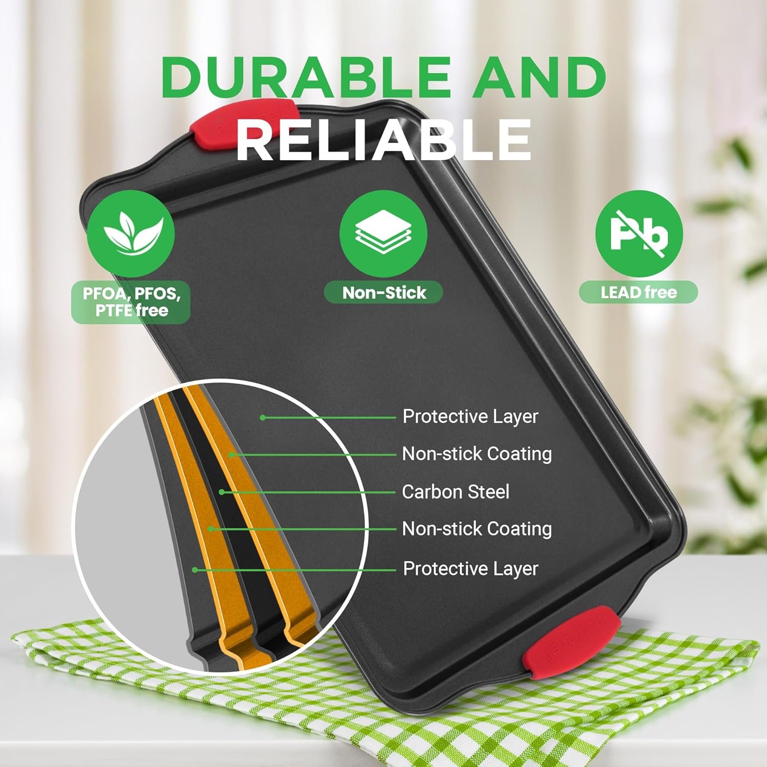 - DURABLE BAKEWARE: Made from carbon steel to resist warping.