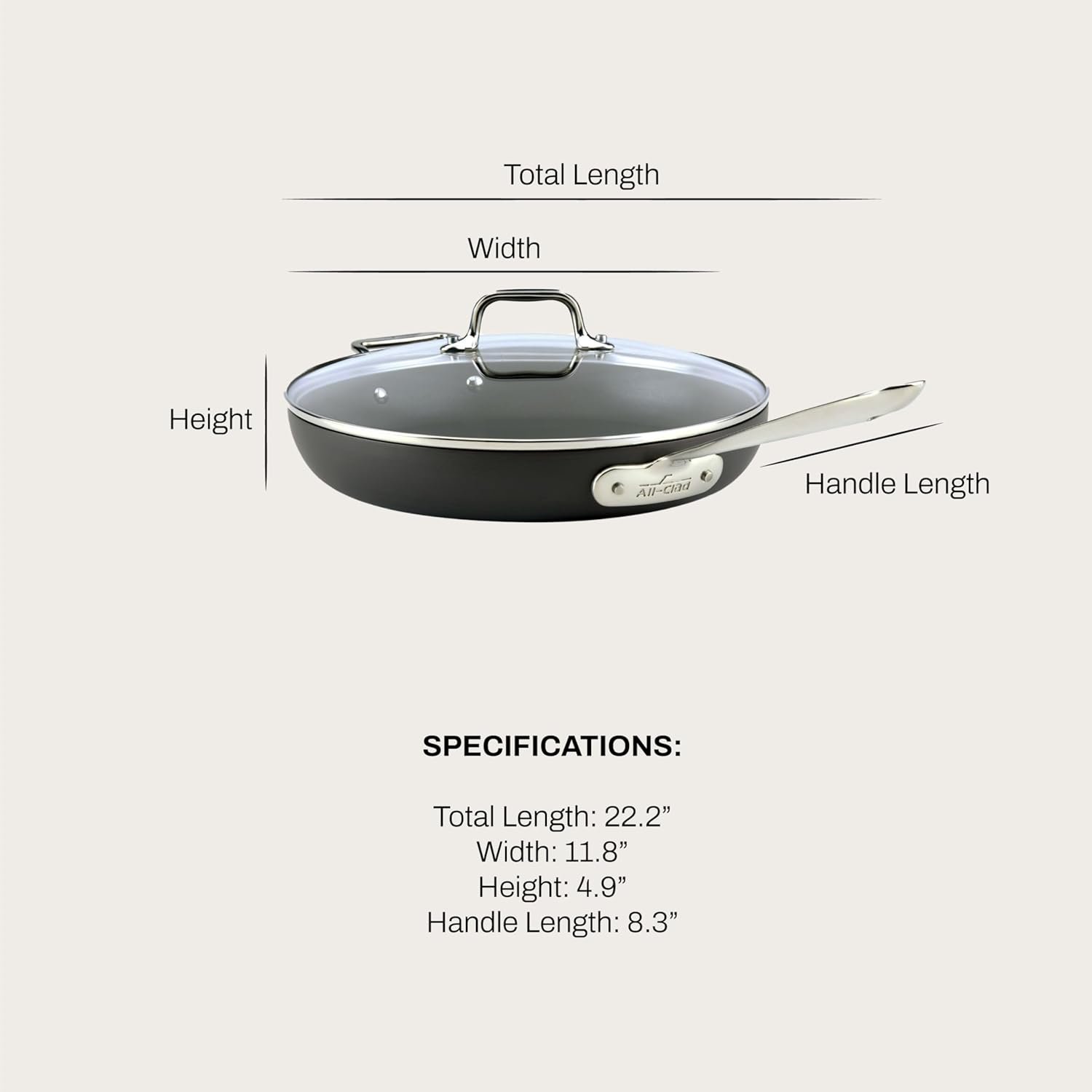 The All-Clad HA1 Hard Anodized Nonstick Fry Pan is a versatile 12-inch cookware essential, perfect for browning, searing, and pan-frying your favorite foods. Its heavy gauge aluminum construction ensures even heat distribution for consistent cooking, while the sleek design and double riveted stainless steel handles provide both style and functionality. Oven safe up to 500°F and compatible with all stovetops, including induction, this fry pan is dishwasher safe and easy to maintain. Elevate your cooking experience with this high-quality, durable pan from All-Clad.