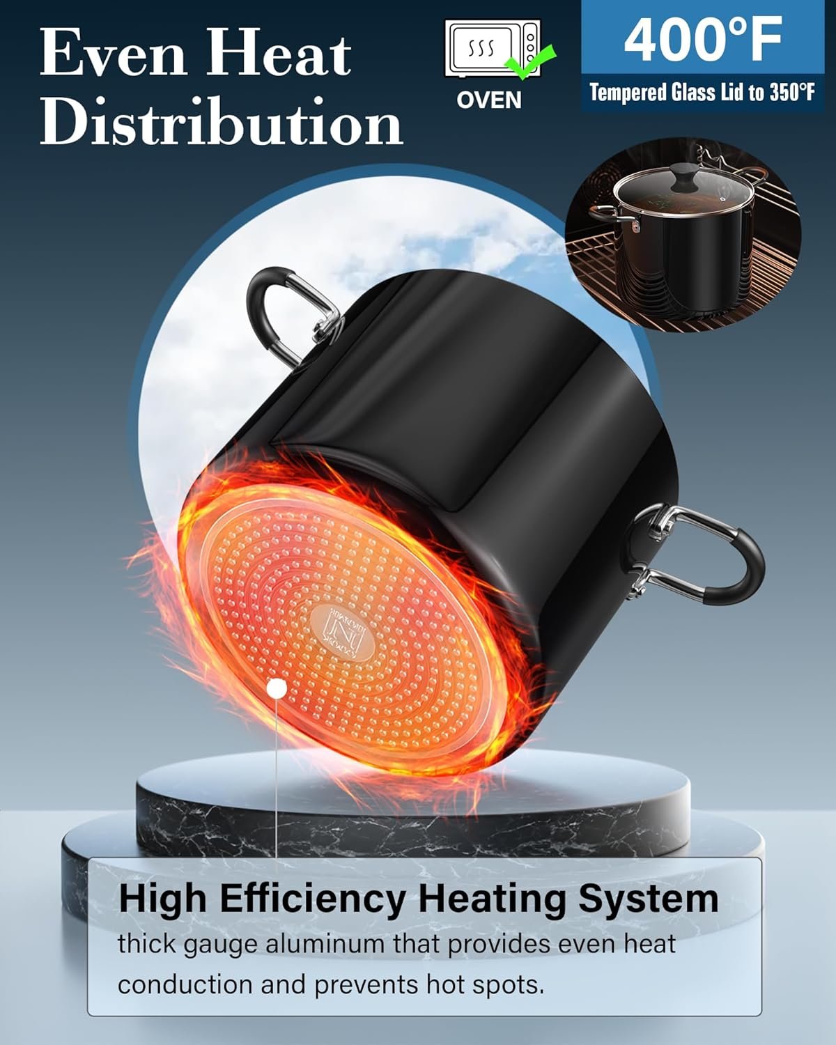 • Effortless Easy Cleanup: The premium nonstick black cooking pot interior allows foods to release cleanly, making food residue wipe away with just a sponge.