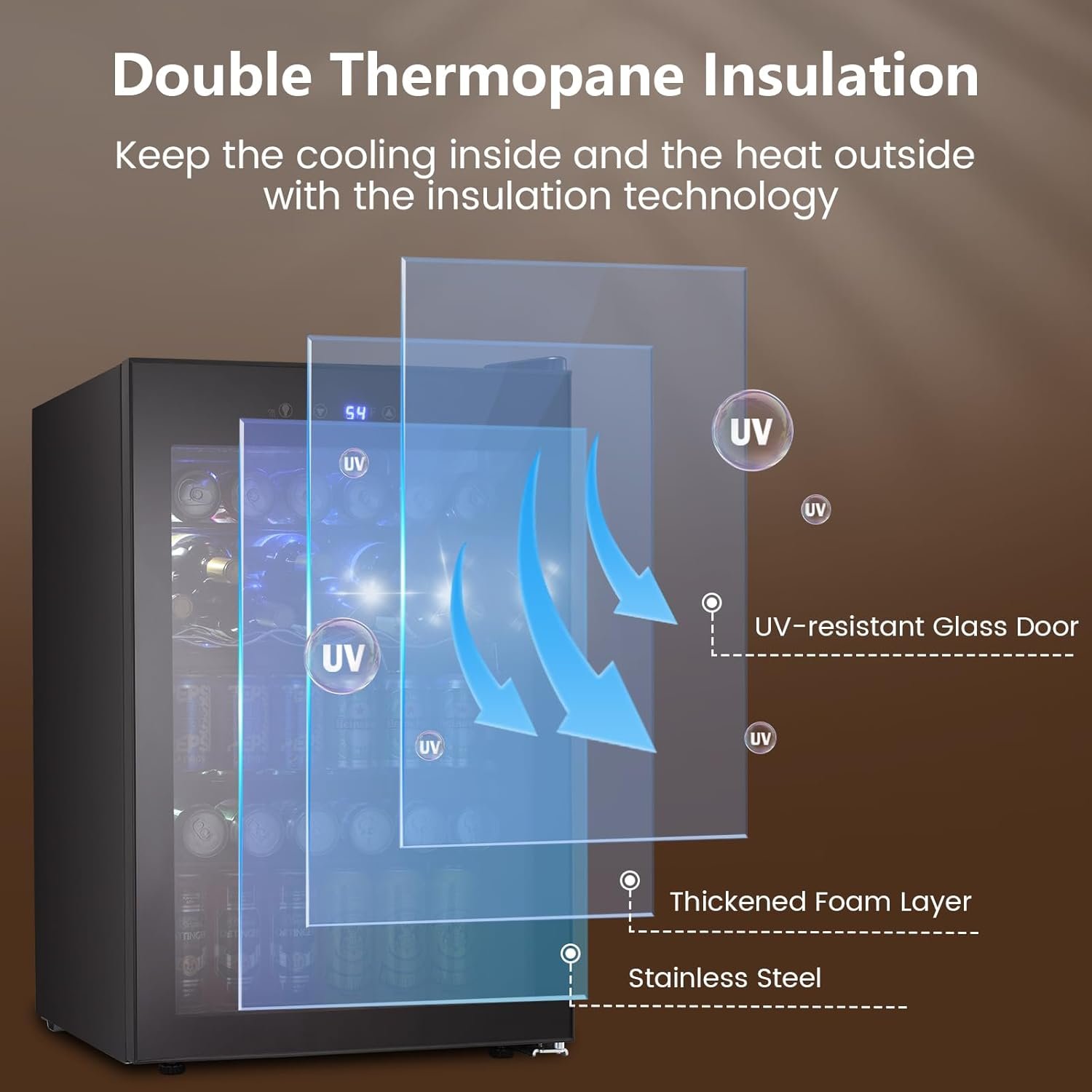 - Premium glass door design: The glass door is UV-resistant and seals tightly to keep cold air in and preserve wine quality. The look is modern and matches a home bar, office, or kitchen.